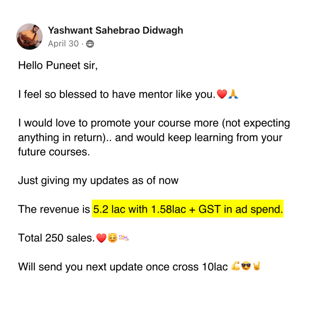 Hi, I'm Abhishek, a seasoned expert in Facebook Ads, funnels, online sales, and landing page design, with a proven track record of spending over ₹3 crores on Facebook Ads to deliver high ROAS. I specialize in crafting seamless funnel strategies, designing high-converting landing pages, and making data-driven decisions to optimize your Meta Ads campaigns. Whether you're a small business or a large enterprise, my tailored solutions and decade-long experience in digital marketing ensure exceptional results and transformative growth. Let's work together to elevate your digital advertising efforts and achieve your business goals.
